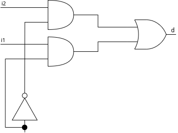 Tem duas entradas de dados i1 e i0, uma entrada de seleção s0 e uma saída de dados d.