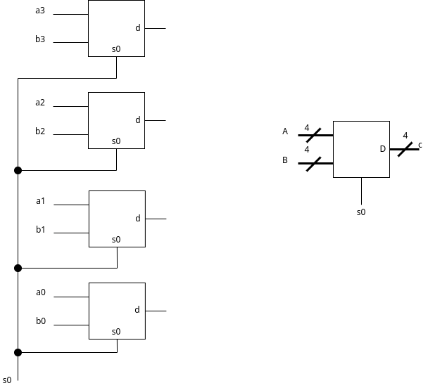 Um conjunto de entradas A pode consistir em quatros bits, a3, a2, a1 e a0, em outro conjunto de entradas b também podem consistir em quatro bits.